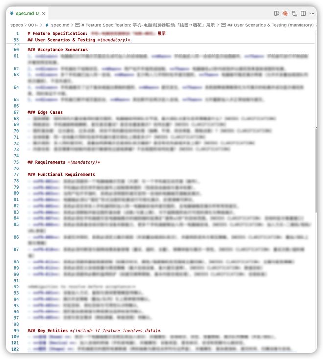 1. 需求澄清:/specify指令和对应的模板里,有梳理想法、澄清需求、构建需求文档的全部内容。